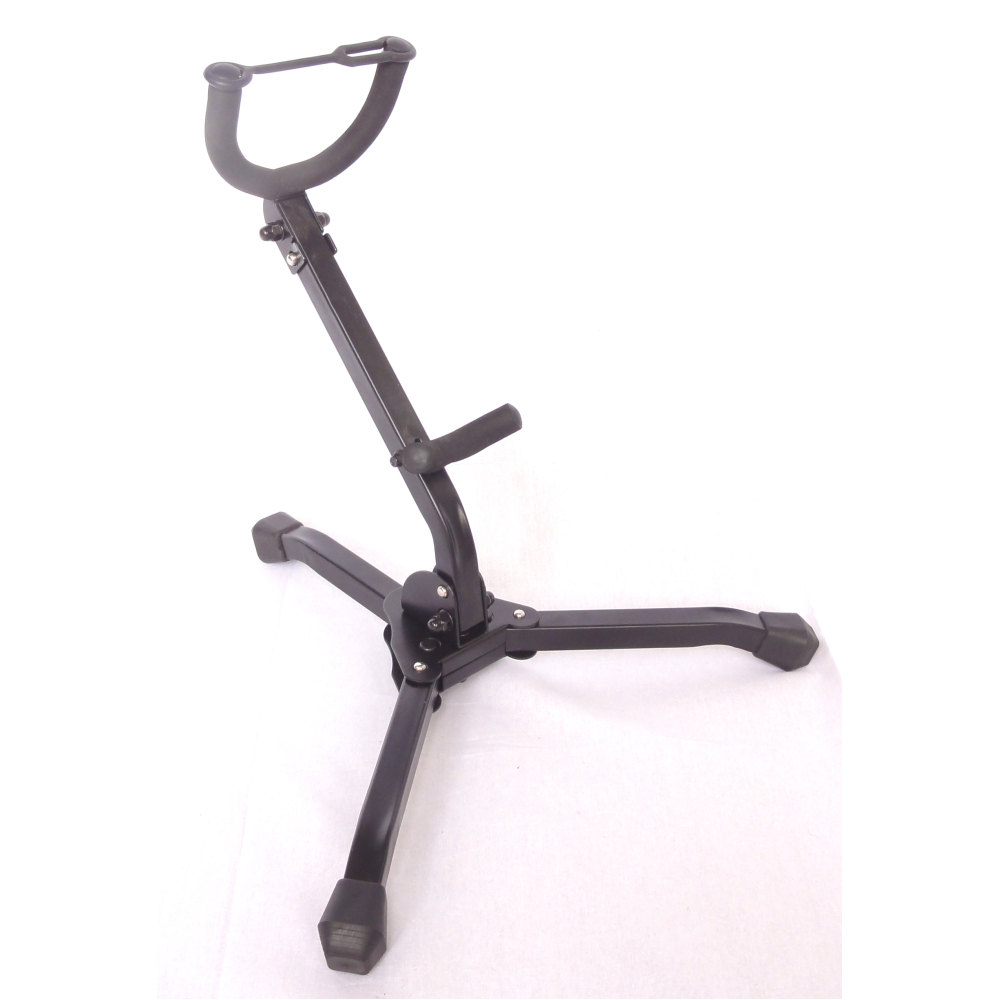 Inklapbaar model saxofoon standaard, zeer stevig model. De standaard wordt door middel van bajonetsluitingen gefixeerd in de uitgeklapte stand.